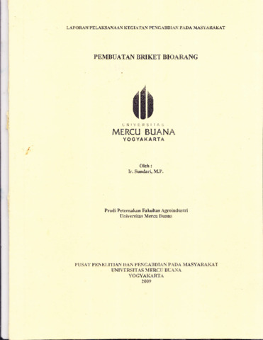 Sundari, Sundari (2008) Laporan Pelaksanaan Kegiatan Pengabdian Pada Masyarakata: Pembuatan Briket Bioarang. Project Report. Program Studi Peternakan Fakultas Agroindustri, Yogyakarta.